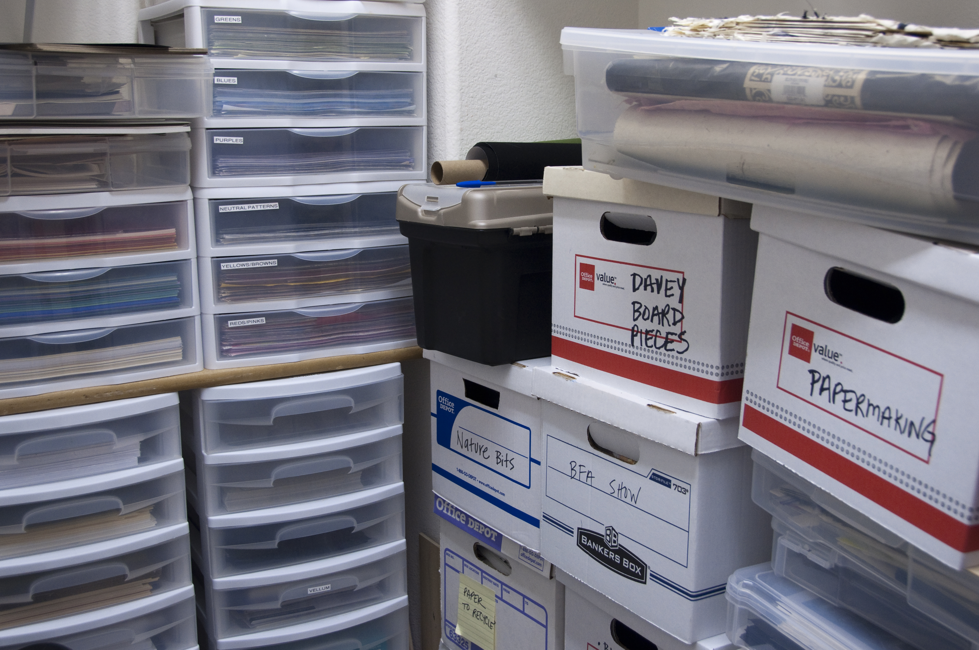 What do you think? What percentage of your studio should be employed for storage of supplies and completed work? And when does storing things get in the way of creating new work?