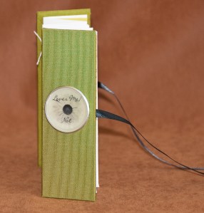 A few orders from Talas later, I ordered the Asahi bookcloth swatches. I can’t even begin to tell you how tickled I was with this swatch book. These beautiful washed silks, slubbed fabrics and iridescent shimmering squares made my heart sing. Right away I ordered a teal silk that I used for a book I was making about my niece, Samantha’s, transition from adolescence to adulthood called Pendulum: