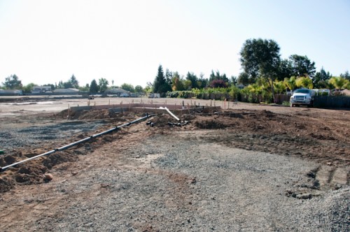 Yesterday we stopped by our new home and checked in on the progress. We’ve gone from flat dirt to dirt with boards, yippee! Here is the first picture of my new studio: