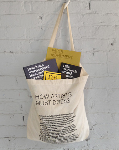 So when we were at the LA Art Book Fair I had a good laugh at the n+1 table. They had tote bags with an excerpt from the book I like your work: art and etiquette titled “How Artists Must Dress.”