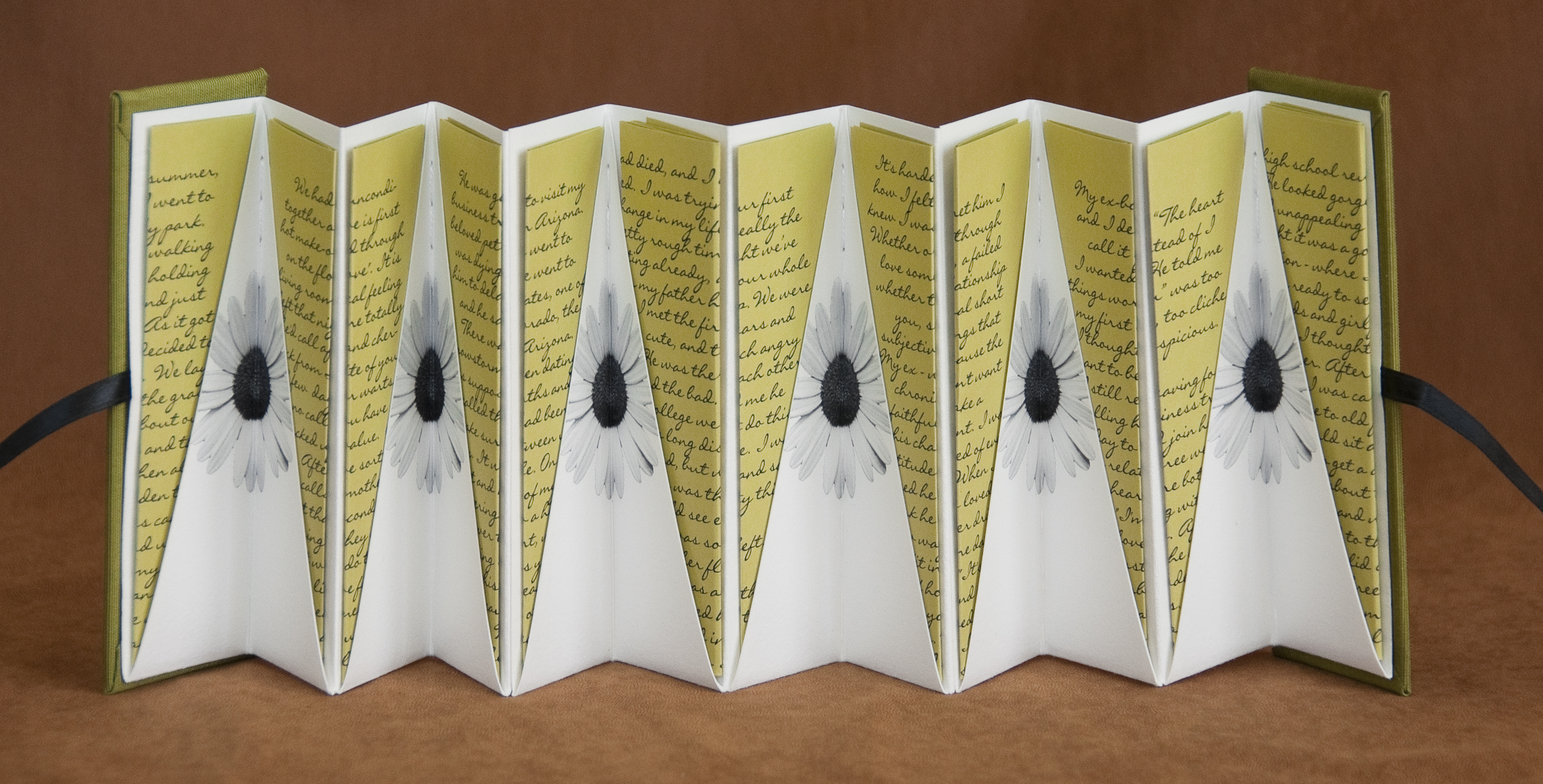 I admit, there are tears running down my face, but they are not for what happened to me, instead they are for the experience I had when sharing this book. What happened during my BFA show opening was beyond anything I could have imagined. Women came up to me and told me their stories, right there, in the gallery. Women called me days later and told me their stories. They said things like, “I’ve never told anyone, but I know you will understand.” And what I realized in those moments was that by telling each other our stories we were taking away the power of the people who hurt us. Secrets are so powerful and they continue to hurt the people who keep them. More than one woman has since said, “I want you to tell my story.” In the future I hope to make artists’ books together with other women to tell their stories – perhaps in a gallery project.
