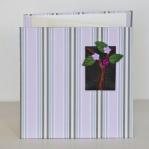 The first book, Tropical Dreams, has a polymer clay medallion mounted on the cover of an accordion book. The clay medallion was made using a series of fondant (like for cake icing) molds and then glazed with a satin glaze after baking.