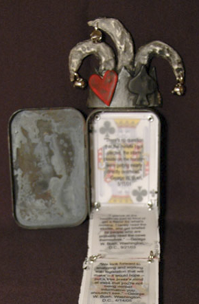 I’ve been fascinated by the possible uses of polymer clay in artists books since I first used it for the jesters hat on my artists’ book King George.