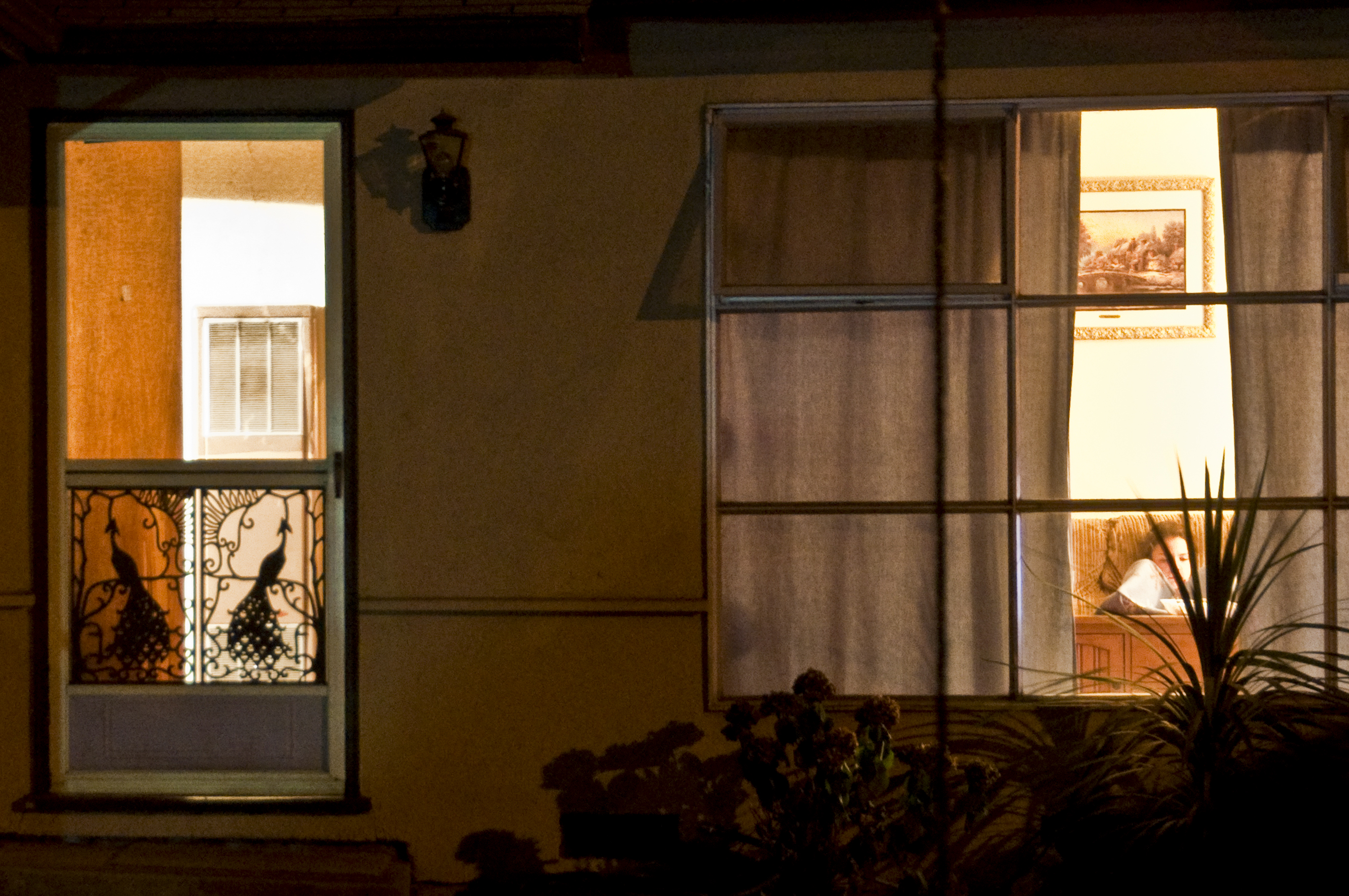 Just as our windows allow us to see out during the day, at night they become view screens to the passerby. Our devices allow us great personal freedom, but at what personal cost? Whether through open curtains or social media posting our permission to watch is implicit. In an age of Facebook, Instagram and Google Earth how is it that we have any expectation of privacy at all?