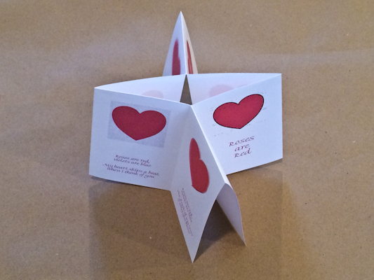 Last year my Valentine’s gift to you was the instructions for a book with a Polymer Clay Mosaic cover. This year I thought I’d make you a Flutter Book (also called an X Book, Maze Book, or a Cut and Fold Book).